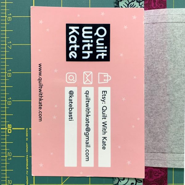 Step 3: Grab your piece of card stock (in my case, one of my Quilt With Kate postcards) and place the edge of the card on the line between 1D and 2D.